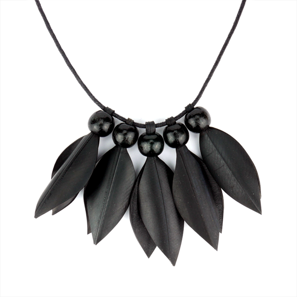 Inka-sisurikaulakorut on valmistettu pyörän sisäkumista, puuhelmistä ja puuvillanyöristä. Kaulanauhat ovat säädettäviä.
